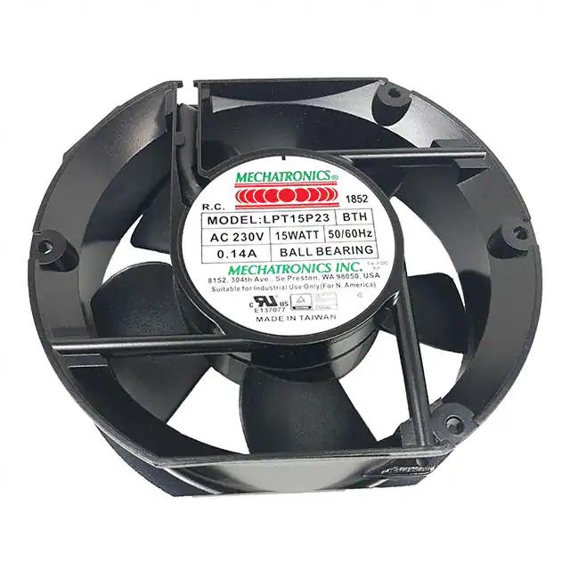 This is manufactured by Mechatronics Fan Group. The manufacturer part number is LPT15P23-BTHR. It is assigned with possible HTSUS value of 8414.59.6590. The product is rohs compliant. Furthermore, the product is 51.00mm wide. It is approved by ce, cul, ul. It also exhibits voltage rating of 230vac. This has integrated with a ball, a bearing with long-lasting features. The product has -40 ~ 158°f (-40 ~ 70°c) operating temperature range. It is shipped in bulk. The product's diameters include rectangular - 172mm l x 150mm h. The product features 2 terminals termination style. It has a long 44 weeks standard lead time. Its typical moisture sensitivity level is 1 (unlimited). The splendid features of the product include auto restart, electronic commutation (ec). The product lpt15p23, is a highly preferred choice for users. The product is designated with the ear99 code number