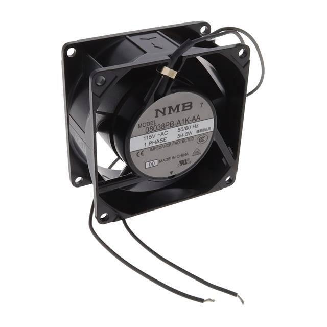 This is manufactured by NMB Technologies Corporation. The manufacturer part number is 08038PB-A1K-AA-00. The blades are constructed from robust plastic materials. It is assigned with possible HTSUS value of 8414.59.6590. Furthermore, the product is 38.00mm wide. The product features power and watts of 4.50w. It has a 24.0 cfm (0.672m³/min) air flow rate. It has noise values of 32.0db. It also exhibits voltage rating of 115vac. This has integrated with a ball, a bearing with long-lasting features. The product has 14 ~ 158°f (-10 ~ 70°c) operating temperature range. It provides maximum rpm up to 2300 rpm. The latest designed fan is a type of tubeaxial offering unmatchable applications. The product has a 0.120 in h2o (29.9 pa) static pressure. It is shipped in bulk. The product's diameters include square - 80mm l x 80mm h. The product features 2 terminals termination style. It has a long 26 weeks standard lead time. Additionally, the product's output is 0.070a Its typical moisture sensitivity level is not applicable. The product 08038pb, is a highly preferred choice for users. The frame of the product is made from highly durable aluminum materials. This product offers longer life span for 100000 hrs @ 25°c. The product is designated with the ear99 code number