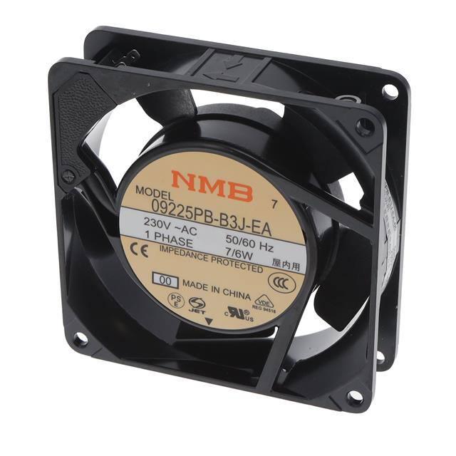 This is manufactured by NMB Technologies Corporation. The manufacturer part number is 09225PB-B3J-EA-00. The blades are constructed from robust plastic materials. It is assigned with possible HTSUS value of 8414.59.6590. Furthermore, the product is 25.00mm wide. The product features power and watts of 6.00w. It has a 20.0 cfm (0.560m³/min) air flow rate. It has noise values of 26.0db. It also exhibits voltage rating of 230vac. This has integrated with a ball, a bearing with long-lasting features. The product has 14 ~ 158°f (-10 ~ 70°c) operating temperature range. It provides maximum rpm up to 1800 rpm. The latest designed fan is a type of tubeaxial offering unmatchable applications. The product has a 0.080 in h2o (19.9 pa) static pressure. It is shipped in bulk. The product's diameters include square - 92.5mm l x 92.5mm h. The product features 2 terminals termination style. It has a long 26 weeks standard lead time. Additionally, the product's output is 0.040a Its typical moisture sensitivity level is not applicable. The product 09225pb, is a highly preferred choice for users. The frame of the product is made from highly durable aluminum materials. This product offers longer life span for 100000 hrs @ 25°c. The product is designated with the ear99 code number