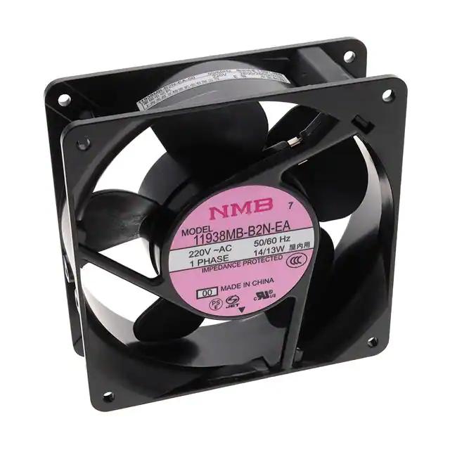 This is manufactured by NMB Technologies Corporation. The manufacturer part number is 11938MB-B2N-EA-00. The blades are constructed from robust plastic materials. It is assigned with possible HTSUS value of 8414.59.6590. Furthermore, the product is 38.00mm wide. The product features power and watts of 13.00w. It has a 102.4 cfm (2.87m³/min) air flow rate. It has noise values of 41.0db. It also exhibits voltage rating of 220vac. This has integrated with a ball, a bearing with long-lasting features. The product has 14 ~ 158°f (-10 ~ 70°c) operating temperature range. It provides maximum rpm up to 2900 rpm. This product offers longer life span for 100000 hrs @ 25°c. The product has a 0.300 in h2o (74.7 pa) static pressure. It is shipped in bulk. The product's diameters include square - 119mm l x 119mm h. The product features 2 terminals termination style. It has a long 26 weeks standard lead time. Additionally, the product's output is 0.100a Its typical moisture sensitivity level is not applicable. The product 11938mb, is a highly preferred choice for users. The frame of the product is made from highly durable aluminum materials. The latest designed fan is a type of tubeaxial offering unmatchable applications. The product is designated with the ear99 code number
