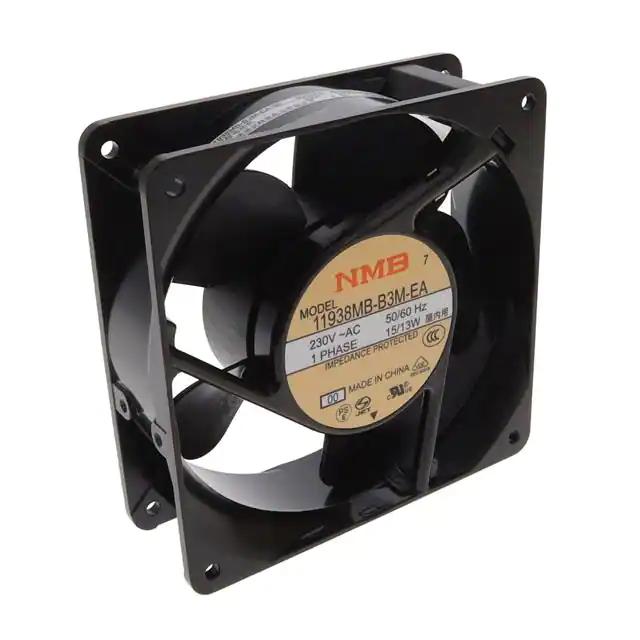 This is manufactured by NMB Technologies Corporation. The manufacturer part number is 11938MB-B3M-EA-00. The blades are constructed from robust plastic materials. It is assigned with possible HTSUS value of 8414.59.6590. Furthermore, the product is 38.00mm wide. The product features power and watts of 13.00w. It has a 95.0 cfm (2.66m³/min) air flow rate. It has noise values of 39.0db. It also exhibits voltage rating of 230vac. This has integrated with a ball, a bearing with long-lasting features. The product has 14 ~ 158°f (-10 ~ 70°c) operating temperature range. It provides maximum rpm up to 2750 rpm. This product offers longer life span for 100000 hrs @ 25°c. The product has a 0.260 in h2o (64.8 pa) static pressure. It is shipped in bulk. The product's diameters include square - 119mm l x 119mm h. The product features 2 terminals termination style. It has a long 26 weeks standard lead time. Additionally, the product's output is 0.100a Its typical moisture sensitivity level is not applicable. The product 11938mb, is a highly preferred choice for users. The frame of the product is made from highly durable aluminum materials. The latest designed fan is a type of tubeaxial offering unmatchable applications. The product is designated with the ear99 code number