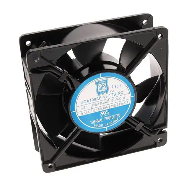 This is manufactured by Orion Fans. The manufacturer part number is OA109AP-11-1TBXCIP55. The blades are constructed from robust polybutylene terephthalate (pbt) materials. It is assigned with possible HTSUS value of 8414.59.6590. The product is rohs3 compliant. Furthermore, the product is 38.50mm wide. The product features power and watts of 15.00w. It has a 104.0 cfm (2.91m³/min) air flow rate. It is approved by ce, curus, tuv, ur. While the voltage range is 100 ~ 125vac. It has noise values of 42.0db(a). It also exhibits voltage rating of 115vac. This has integrated with a ball, a bearing with long-lasting features. The product has -4 ~ 167°f (-20 ~ 75°c) operating temperature range. It provides maximum rpm up to 3000 rpm. This product offers longer life span for 70000 hrs @ 40°c. The product has a 0.290 in h2o (72.2 pa) static pressure. It is shipped in bulk. The product's diameters include square - 120mm l x 120mm h. The product features 2 terminals termination style. It has a long 19 weeks standard lead time. Its typical moisture sensitivity level is not applicable. It is IP rated with ip55 - dust protected, water resistant. The product oa109, is a highly preferred choice for users. The frame of the product is made from highly durable aluminum materials. The latest designed fan is a type of tubeaxial offering unmatchable applications. The product is designated with the ear99 code number
