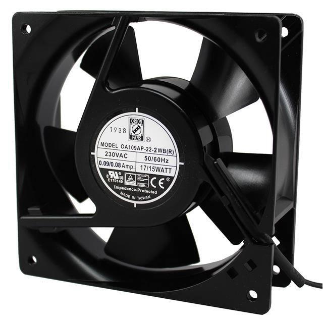 This is manufactured by Orion Fans. The manufacturer part number is OA109AP-22-2WBR. The blades are constructed from robust polybutylene terephthalate (pbt) materials. It is assigned with possible HTSUS value of 8414.59.6590. Furthermore, the product is 38.50mm wide. The product features power and watts of 13.00w. It has a 85.0 cfm (2.38m³/min) air flow rate. It is approved by curus, tuv. While the voltage range is 160 ~ 260vac. It has noise values of 45.0db(a). It also exhibits voltage rating of 230vac. This has integrated with a ball, a bearing with long-lasting features. The product has -4 ~ 176°f (-20 ~ 80°c) operating temperature range. It provides maximum rpm up to 2750 rpm. This product offers longer life span for 60000 hrs @ 40°c. The product has a 0.250 in h2o (62.3 pa) static pressure. It is shipped in bulk. The product's diameters include square - 119.5mm l x 119.5mm h. The product features 2 wire leads termination style. It has a long 1 weeks standard lead time. Its typical moisture sensitivity level is not applicable. The product oa109ap, is a highly preferred choice for users. The frame of the product is made from highly durable aluminum materials. The latest designed fan is a type of tubeaxial offering unmatchable applications. The product is designated with the ear99 code number