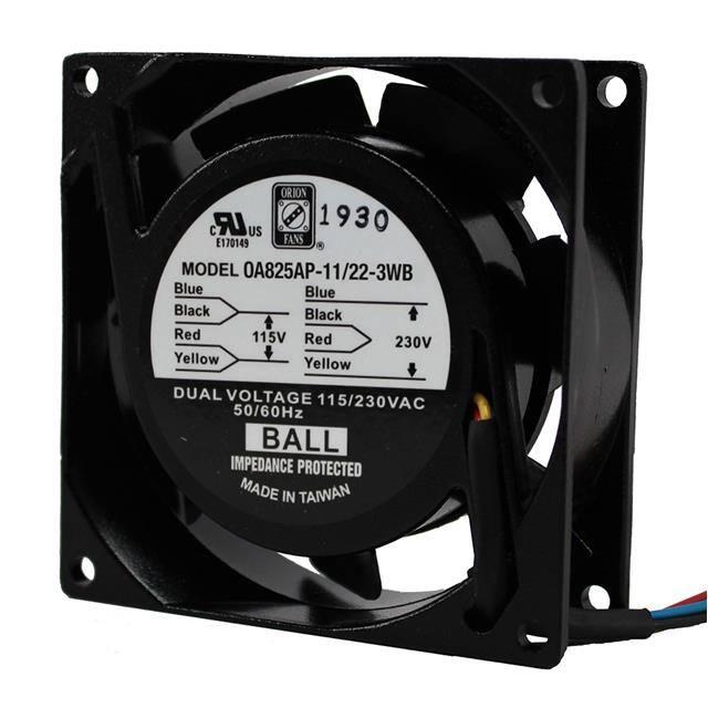 This is manufactured by Orion Fans. The manufacturer part number is OA825AP-11/22-3WB. The blades are constructed from robust polybutylene terephthalate (pbt) materials. It is assigned with possible HTSUS value of 8414.59.6590. Furthermore, the product is 26.00mm wide. The product features power and watts of 4.00w. It has a 17.0 cfm (0.476m³/min) air flow rate. It is approved by ce, curus, tuv, ur. While the voltage range is 100 ~ 240vac. It has noise values of 19.0db(a). It also exhibits voltage rating of 115 ~ 230vac. This has integrated with a ball, a bearing with long-lasting features. The product has -4 ~ 158°f (-20 ~ 70°c) operating temperature range. It provides maximum rpm up to 2100 rpm. This product offers longer life span for 80000 hrs @ 45°c. The product has a 0.120 in h2o (29.9 pa) static pressure. It is shipped in bulk. The product's diameters include square - 80mm l x 80mm h. The product features 2 wire leads termination style. It has a long 1 weeks standard lead time. Its typical moisture sensitivity level is not applicable. The splendid features of the product include dual voltage. The product oa825ap, is a highly preferred choice for users. The frame of the product is made from highly durable aluminum materials. The latest designed fan is a type of tubeaxial offering unmatchable applications. The product is designated with the ear99 code number