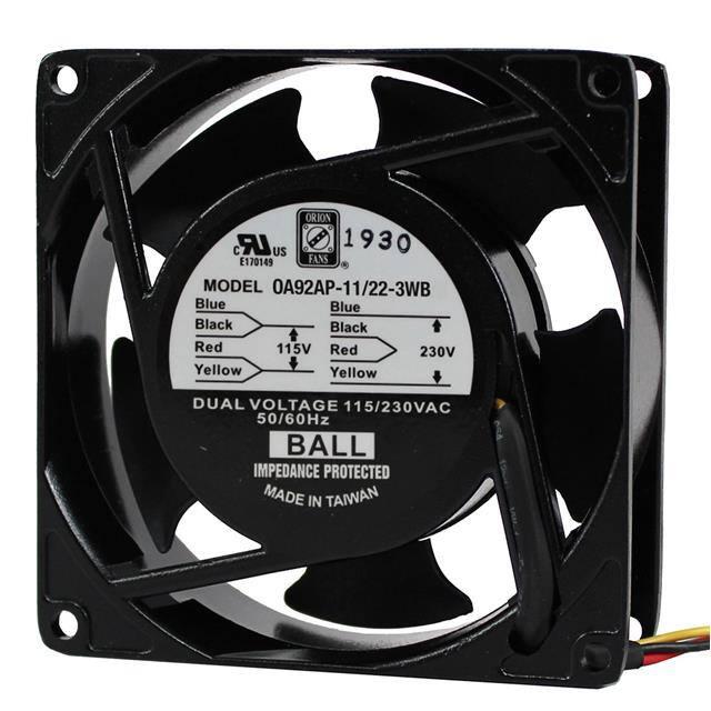 This is manufactured by Orion Fans. The manufacturer part number is OA92AP-11/22-3WB. The blades are constructed from robust polybutylene terephthalate (pbt) materials. It is assigned with possible HTSUS value of 8414.59.6590. Furthermore, the product is 26.00mm wide. The product features power and watts of 6.00w. It has a 22.0 cfm (0.616m³/min) air flow rate. It is approved by ce, curus, tuv, ur. While the voltage range is 100 ~ 240vac. It has noise values of 19.0db(a). It also exhibits voltage rating of 115 ~ 230vac. This has integrated with a ball, a bearing with long-lasting features. The product has -4 ~ 158°f (-20 ~ 70°c) operating temperature range. It provides maximum rpm up to 1900 rpm. This product offers longer life span for 80000 hrs @ 45°c. The product has a 0.100 in h2o (24.9 pa) static pressure. It is shipped in bulk. The product's diameters include square - 92mm l x 92mm h. The product features 2 wire leads termination style. It has a long 1 weeks standard lead time. Its typical moisture sensitivity level is not applicable. The splendid features of the product include dual voltage. The product oa92ap, is a highly preferred choice for users. The frame of the product is made from highly durable aluminum materials. The latest designed fan is a type of tubeaxial offering unmatchable applications. The product is designated with the ear99 code number