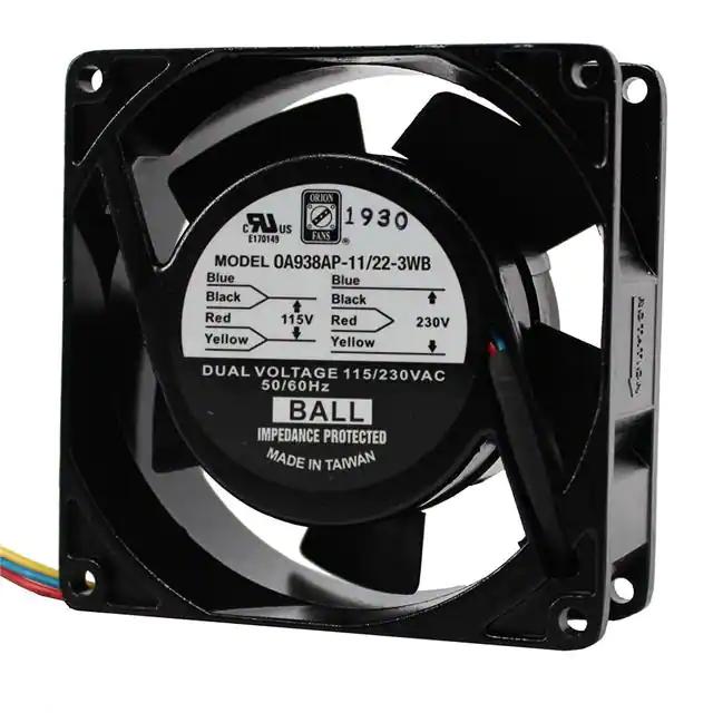 This is manufactured by Orion Fans. The manufacturer part number is OA938AP-11/22-3WB. The blades are constructed from robust polybutylene terephthalate (pbt) materials. It is assigned with possible HTSUS value of 8414.59.6590. Furthermore, the product is 38.00mm wide. The product features power and watts of 3.00w. It has a 26.0 cfm (0.728m³/min) air flow rate. It is approved by ce, curus, tuv, ur. While the voltage range is 100 ~ 240vac. It has noise values of 24.0db(a). It also exhibits voltage rating of 115 ~ 230vac. This has integrated with a ball, a bearing with long-lasting features. The product has -4 ~ 158°f (-20 ~ 70°c) operating temperature range. It provides maximum rpm up to 1900 rpm. This product offers longer life span for 90000 hrs @ 45°c. The product has a 0.100 in h2o (24.9 pa) static pressure. It is shipped in bulk. The product's diameters include square - 92mm l x 92mm h. The product features 2 wire leads termination style. It has a long 1 weeks standard lead time. Its typical moisture sensitivity level is not applicable. The product oa938ap, is a highly preferred choice for users. The frame of the product is made from highly durable aluminum materials. The latest designed fan is a type of tubeaxial offering unmatchable applications. The product is designated with the ear99 code number
