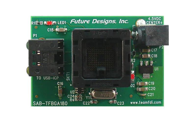 This is manufactured by Future Designs Inc.. The manufacturer part number is SAB-TFBGA180. It is assigned with possible HTSUS value of 8473.30.1180. It is shipped in box. The product is not applicable. It is a type of socket adapter accessory. In addition, it is reach unaffected. Its typical moisture sensitivity level is 1 (unlimited). The product is suitable for use with usb-icp-lpc2k. The product is designated with the 3a992a code number