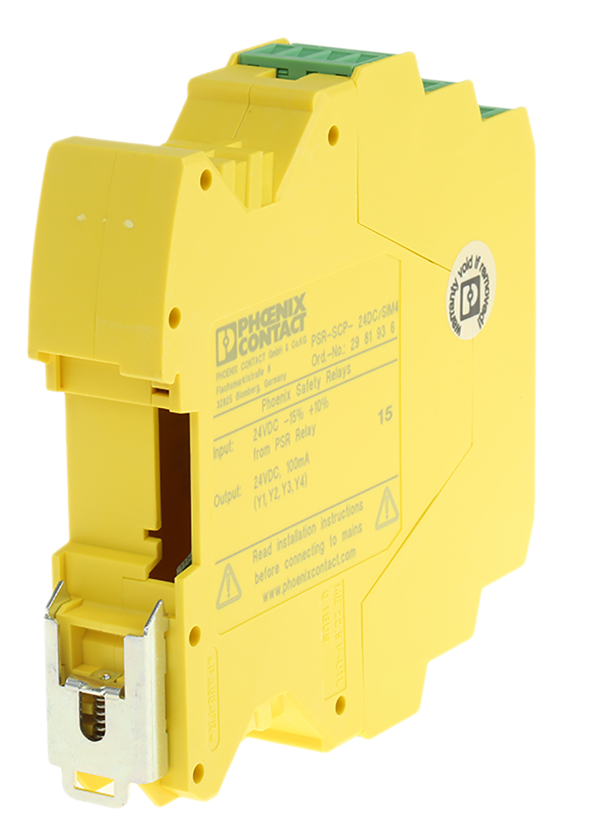 This is manufactured by Phoenix Contact. The manufacturer part number is 2981936. It performs basic function of safety switch/interlock. The product psr-scp-24dc/sim4, is a highly preferred choice for users. Its accurate length is 99mm. Furthermore, the product is 22.5mm wide. The product comes in 106mm depth. It is assigned with possible HTSUS value of 8536.49.0055. It is shipped in bulk. The product is rohs compliant. It is a type of interface module accessory. Its typical moisture sensitivity level is 1 (unlimited). It has a long 4 weeks standard lead time. The product is designated with the ear99 code number