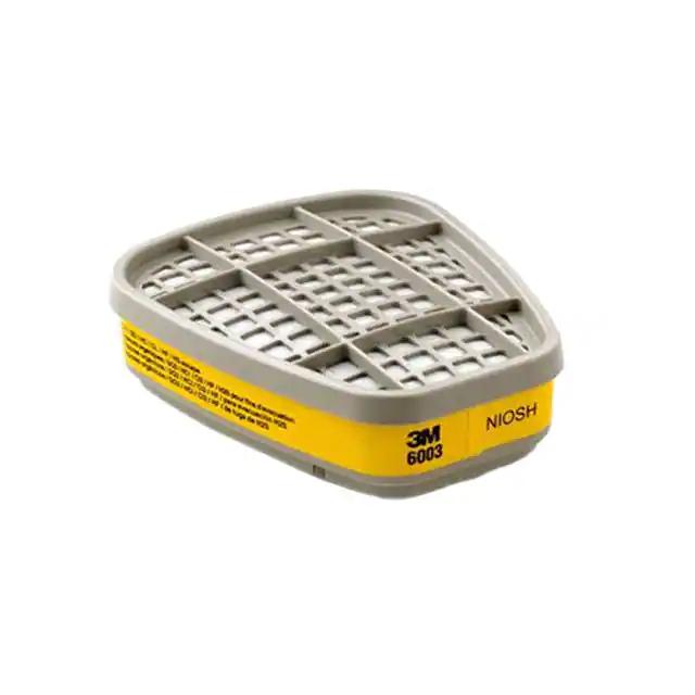 This is manufactured by 3M. The manufacturer part number is 6003. It is assigned with possible HTSUS value of 8421.39.0190. It is shipped in bulk. The product is rohs compliant. It is a type of replacement respirator filter accessory. Its typical moisture sensitivity level is not applicable. The product is suitable for use with 6000, 6500, 7000 and ff-400 series respirators. It has a long 7 weeks standard lead time. The product is designated with the 1a995b code number