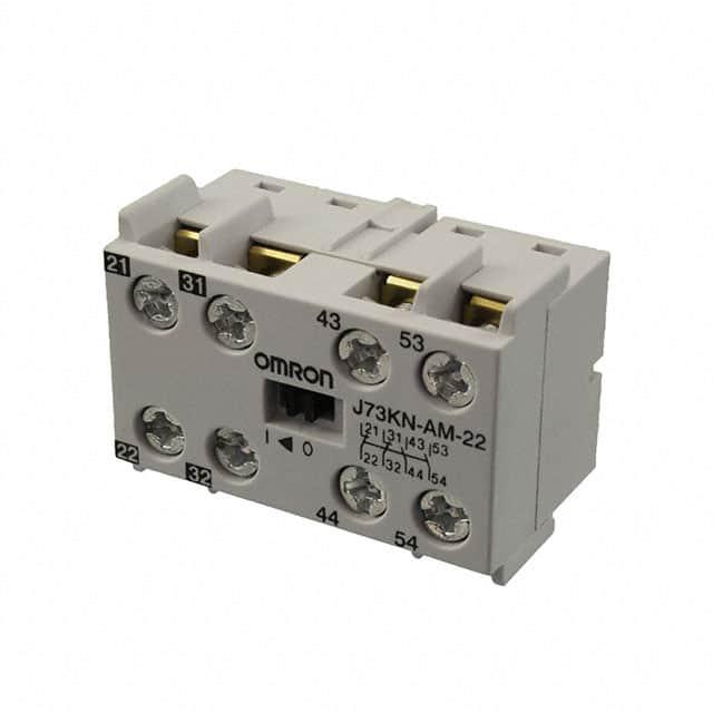 This is manufactured by Omron Automation and Safety. The manufacturer part number is J73KN-AM-22. It is assigned with possible HTSUS value of 8538.90.8180. It is shipped in bulk. The product j7kna, is a highly preferred choice for users. It is a type of auxiliary contact block accessory. Its typical moisture sensitivity level is 1 (unlimited). The product is suitable for use with j7kna contactors. It has a long 10 weeks standard lead time. Moreover, it corresponds to j73kn, a base product number of the product. The product is designated with the ear99 code number