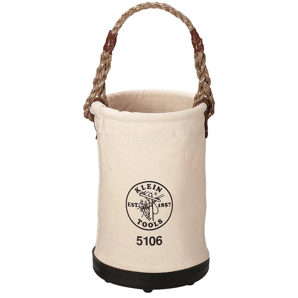 This is manufactured by Klein Tools, Inc.. The manufacturer part number is 5106. It is assigned with possible HTSUS value of 0000.00.0000. The product is not applicable. It is shipped in bulk. It is a type of bucket, canvas accessory. Its typical moisture sensitivity level is not applicable. The product is suitable for use with general purpose. It has a long 2 weeks standard lead time.