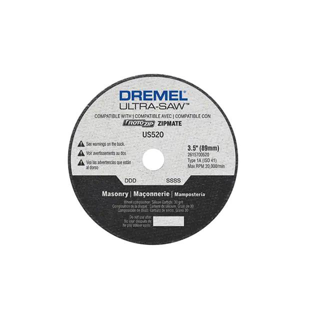 This is manufactured by Dremel. The manufacturer part number is US520-01. It is assigned with possible HTSUS value of 8203.40.6000. It is shipped in bulk. It is a type of wheel accessory. Its typical moisture sensitivity level is not applicable. It has a long 2 weeks standard lead time. Moreover, it corresponds to us520, a base product number of the product. The product is designated with the ear99 code number