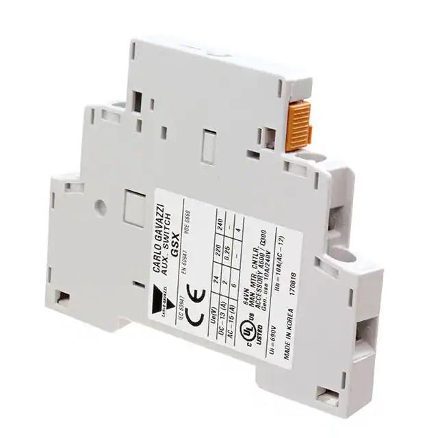 This is manufactured by Carlo Gavazzi Inc.. The manufacturer part number is GSX20. It is assigned with possible HTSUS value of 8536.50.9065. It is shipped in box. It is a type of auxiliary switch accessory. In addition, it is reach unaffected. Its typical moisture sensitivity level is not applicable. The product is suitable for use with circuit breaker. It has a long 24 weeks standard lead time. The product is designated with the ear99 code number