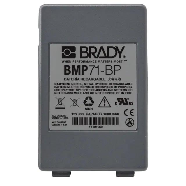 This is manufactured by Brady Corporation. The manufacturer part number is M71-BATT. It is assigned with possible HTSUS value of 8507.50.0000. It is shipped in bulk. Specifications include nimh. The product is rohs3 compliant. It is a type of battery accessory. In addition, it is reach unaffected. Its typical moisture sensitivity level is not applicable. The product is suitable for use with bmp®71 label printer. It has a long 3 weeks standard lead time. The product is designated with the ear99 code number