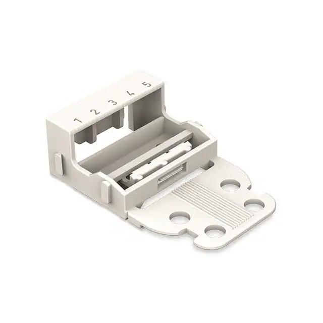 This is manufactured by WAGO Corporation. The manufacturer part number is 221-505. It is assigned with possible HTSUS value of 3926.90.9985. It is shipped in box. It has a classic white colour. The product is rohs3 compliant. Its typical moisture sensitivity level is not applicable. The product is suitable for use with terminal blocks. It has a long 12 weeks standard lead time. It comes in mounting carrier configuration. The product carries possible position value of 5. The product is designated with the ear99 code number