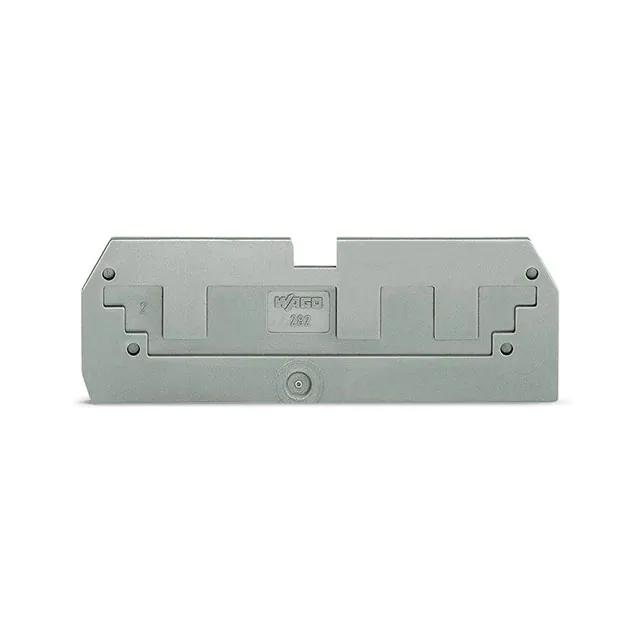 This is manufactured by WAGO Corporation. The manufacturer part number is 282-358. It is assigned with possible HTSUS value of 8538.90.8180. It is shipped in box. It has a classic gray colour. The product is rohs3 compliant. Its typical moisture sensitivity level is not applicable. The product is suitable for use with din rail terminal blocks. It has a long 12 weeks standard lead time. It comes in cover configuration. The product is designated with the ear99 code number