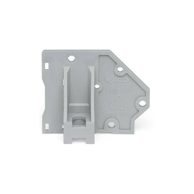 This is manufactured by WAGO Corporation. The manufacturer part number is 745-540. It is assigned with possible HTSUS value of 8538.90.8180. It is shipped in box. It has a classic gray colour. The product is rohs3 compliant. Its typical moisture sensitivity level is not applicable. The product is suitable for use with terminal blocks. It has a long 12 weeks standard lead time. It comes in end plate configuration. The product is designated with the ear99 code number