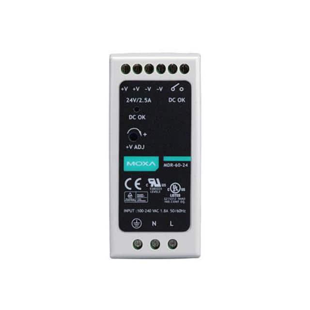 This is manufactured by Moxa. The manufacturer part number is MDR-60-24. Its typical moisture sensitivity level is vendor undefined. It is assigned with possible HTSUS value of 8504.40.9520. It is shipped in box. The product is rohs3 compliant. It is a type of power supply accessory. In addition, it is reach info available upon request. The product is suitable for use with eds-510e series. The product is designated with the ear99 code number