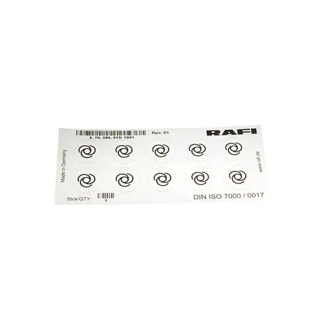 This is manufactured by RAFI USA. The manufacturer part number is 5.70.090.015/1001. It is assigned with possible HTSUS value of 8538.90.8180. It is shipped in bulk. The product is rohs3 compliant. It is a type of legend sheet accessory. In addition, it is reach unaffected. Its typical moisture sensitivity level is not applicable. Moreover, it corresponds to 5.70090, a base product number of the product. It has a long 4 weeks standard lead time. The product is suitable for use with rafix 22 fs and 30 fs series. The product is designated with the ear99 code number