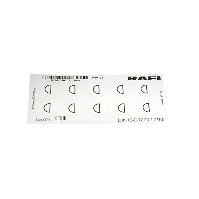 This is manufactured by RAFI USA. The manufacturer part number is 5.70.090.021/1001. It is assigned with possible HTSUS value of 8538.90.8180. It is shipped in bulk. The product is rohs3 compliant. It is a type of legend sheet accessory. In addition, it is reach unaffected. Its typical moisture sensitivity level is not applicable. Moreover, it corresponds to 5.70090, a base product number of the product. It has a long 4 weeks standard lead time. The product is suitable for use with rafix 22 fs and 30 fs series. The product is designated with the ear99 code number
