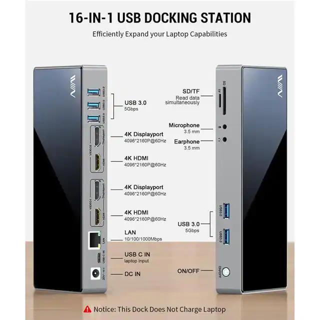This is manufactured by QGeeM. The manufacturer part number is IVIIN 16-IN-1 USB 3.0 DOCKING STATION. It is shipped in case. It is a type of docking station accessory. In addition, it is vendor undefined. The product is suitable for use with usb 3.0/usb c /usb 4/thunderbolt 4/3 laptops, macbook pro, air 2019/2018/2017, 2015/2016 ipad pro, dell xps 13, hp, lenovo, windows 7/ 8 /10 above, mac 10.0 above.