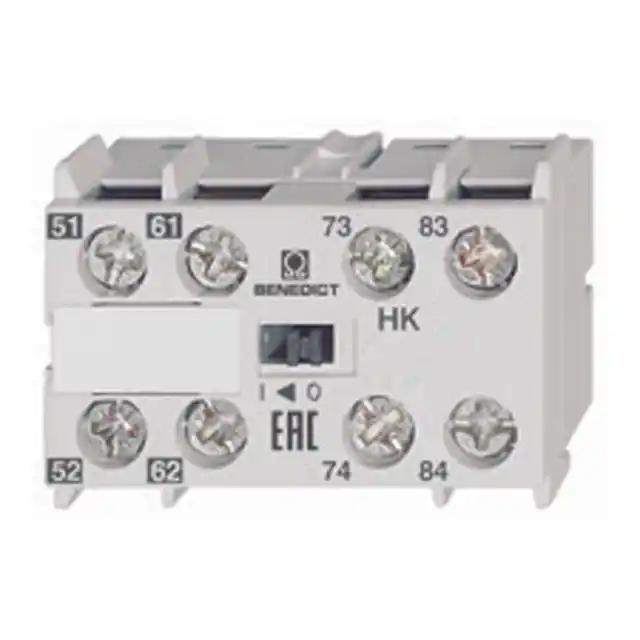 This is manufactured by Benedict GmbH. The manufacturer part number is HKM02. It is assigned with possible HTSUS value of 8536.49.0065. It is shipped in box. The product k1, is a highly preferred choice for users. It is a type of auxiliary contact block accessory. The product is suitable for use with k1 series mini contactors.