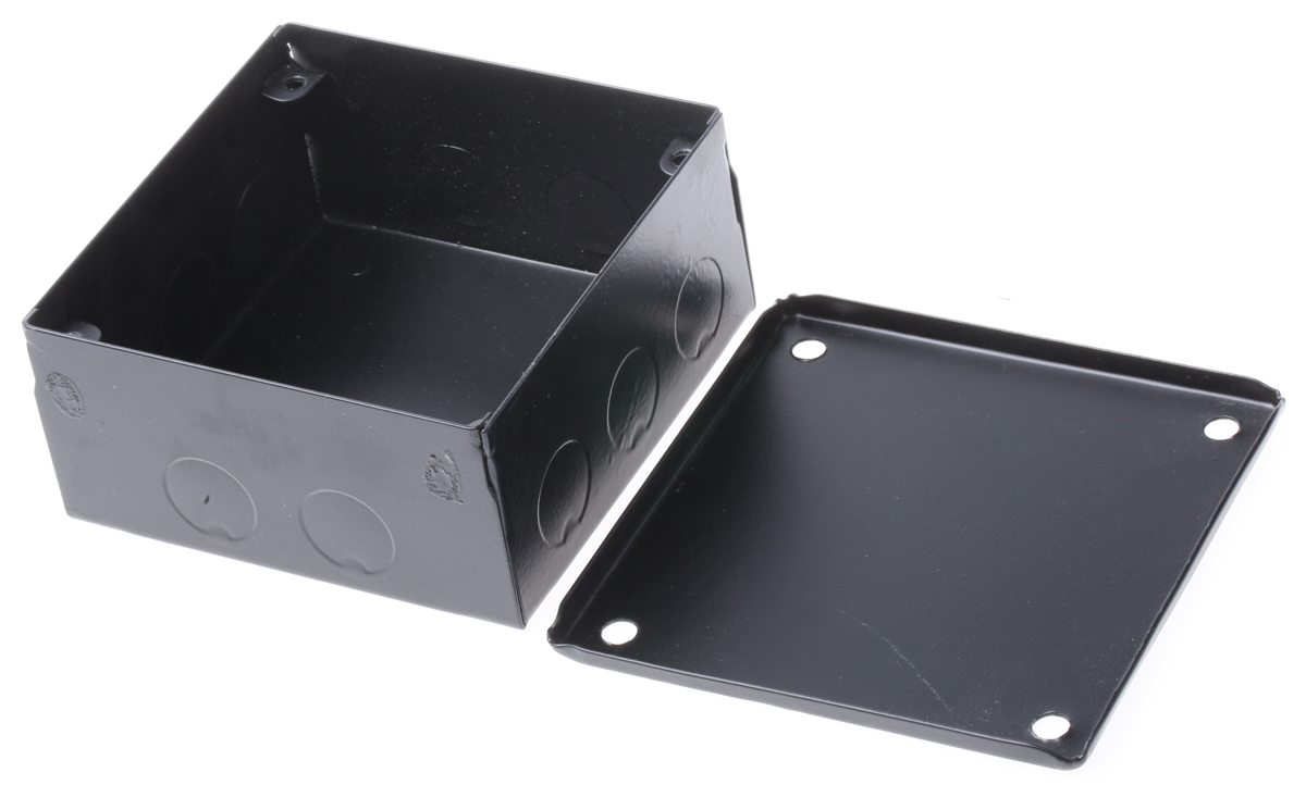 This is Steel Black Enamel Adaptable Box 5 Knockouts 100mm x 100 mm x 50mm manufactured by RS Pro. The manufacturer part number is 763-9204. The product is made from highly stable and reliable steel. Its accurate length is 100mm. In addition, the height is 100mm. Furthermore, the product is 100mm wide. The product comes in 50mm depth.