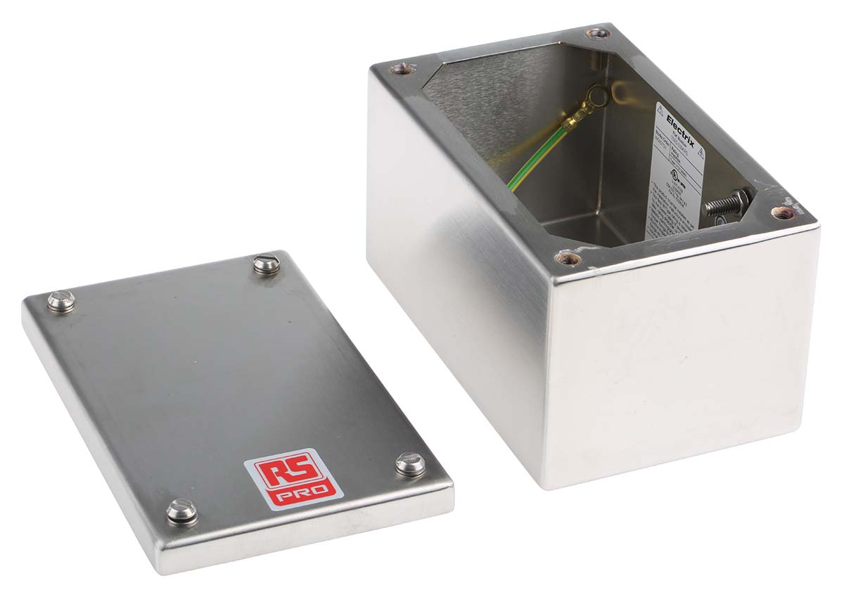 This is 304 Stainless Steel Satin Adaptable Enclosure Box 0 Knockouts 100 mm x 85mm manufactured by RS Pro. The manufacturer part number is 121-9694. A quality product with a nice satin finish. The product is made from highly stable and reliable 304 stainless steel. Its accurate length is 160mm. In addition, the height is 160mm. Furthermore, the product is 100mm wide. The product comes in 85mm depth.
