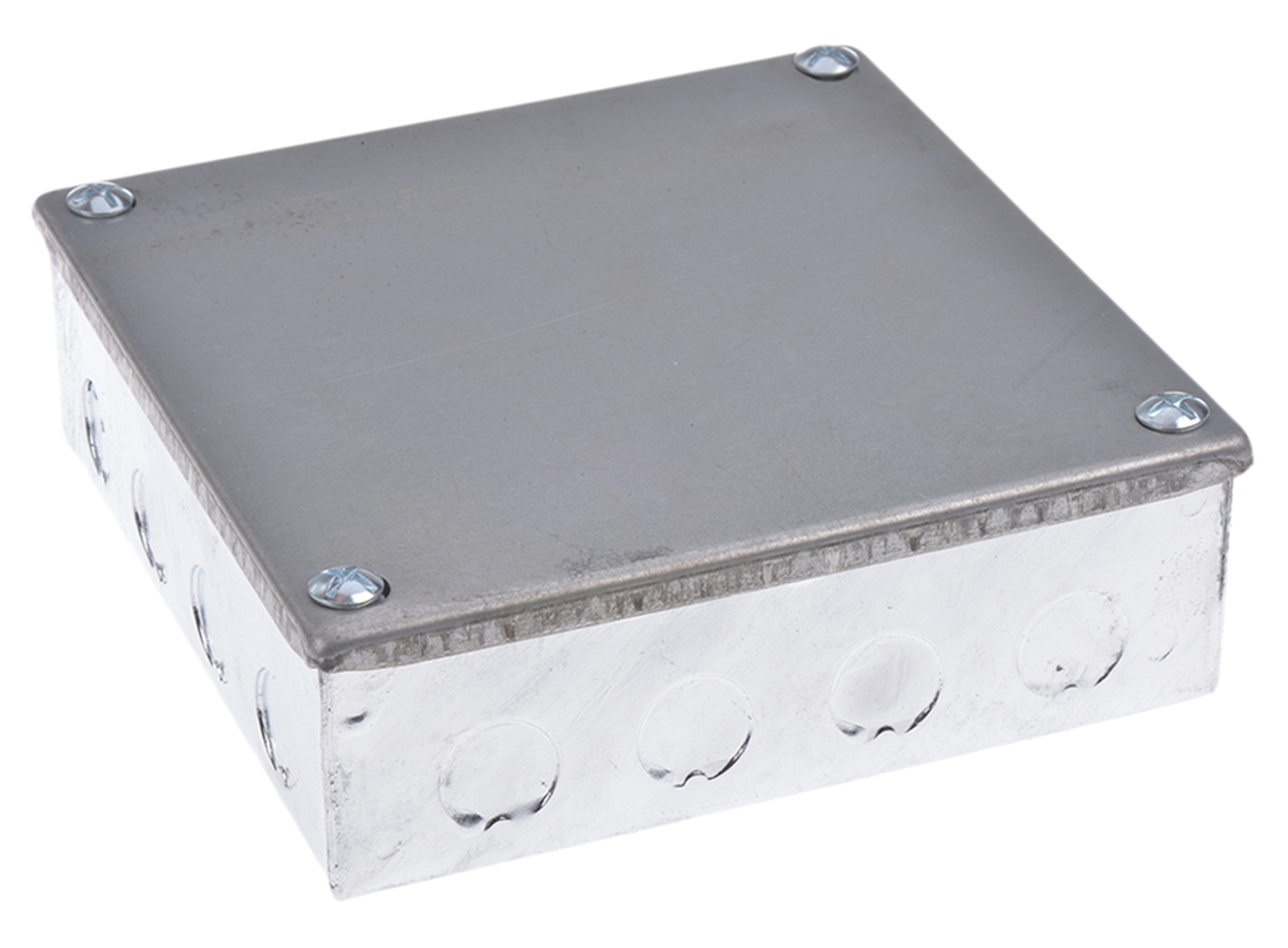 This is Steel Galvanised Adaptable Box 12 Knockouts 150mm x 150 mm x 50mm 20/25mm Knockout Size manufactured by RS Pro. The manufacturer part number is 563-911. A quality product with a nice galvanised finish. The product is made from highly stable and reliable steel. Its accurate length is 150mm. In addition, the height is 150mm. Furthermore, the product is 150mm wide. The product comes in 50mm depth.
