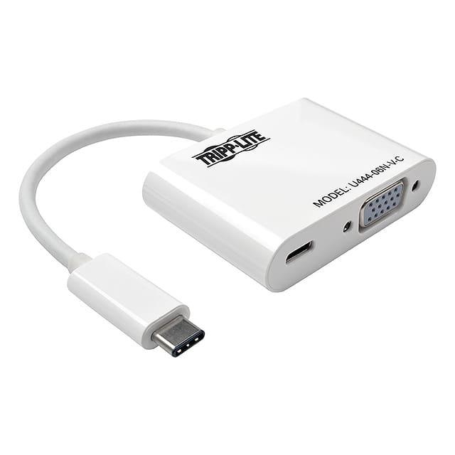 This is manufactured by Tripp Lite. The manufacturer part number is U444-06N-V-C. It is assigned with possible HTSUS value of 8537.10.9170. The product is rohs compliant. It has conversion specifications from usb - c 3.0 (3.1 gen 1, superspeed) male. It comes in usb to vga configuration. Can effectively be converted to d-sub hd15 female. It is shipped in bulk. Its typical moisture sensitivity level is not applicable. It has a long 2 weeks standard lead time. The splendid features of the product include thunderbolt compatible, usb - c charging port. The product is designated with the ear99 code number