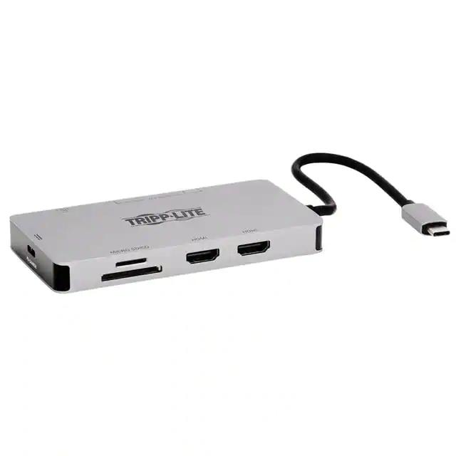 This is manufactured by Tripp Lite. The manufacturer part number is U442-DOCK8G-GG. It is assigned with possible HTSUS value of 8471.80.1000. The product is rohs3 compliant. It has conversion specifications from usb - c male. It comes in usb to ethernet, hdmi, micro sd, sd, usb configuration. Can effectively be converted to hdmi female (2), micro sd female, sd female, rj45 female, usb a female (2), usb c female. It is shipped in box. Its typical moisture sensitivity level is not applicable. It has a long 2 weeks standard lead time. The splendid features of the product include led indicator, thunderbolt compatible. The product is designated with the ear99 code number