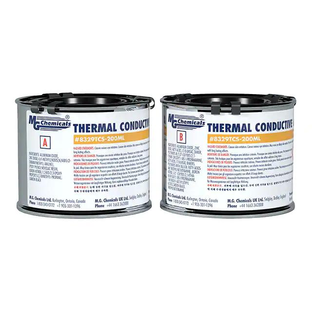 This is manufactured by MG Chemicals. The manufacturer part number is 8329TCS-200ML. It is assigned with possible HTSUS value of 3506.10.5000. The product is rohs3 compliant. The product is highly reliable with a long-lasting period of 36 months. It comes in epoxy, 2 part configuration. In addition, it is reach unaffected. Its warranty starts from date of manufacture. It carries ul94 v-0 of material flammability rating. It offers storage features at 72°f ~ 81°f (22°c ~ 27°c). It features thermal conductivity of 1.40w/m-k. It is shipped in bulk. The product's diameters include 200 ml jar. Shipping Information: shipped from digi-key. Its typical moisture sensitivity level is not applicable. The splendid features of the product include low outgassing (astm e595). It has a classic gray colour. The product 8329tcs, is a highly preferred choice for users. Moreover, it corresponds to 8329, a base product number of the product. The product is designated with the ear99 code number