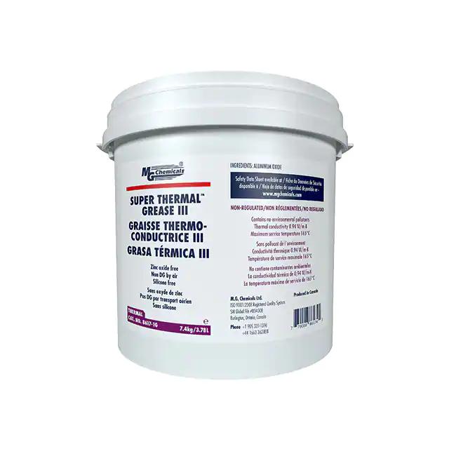 This is manufactured by MG Chemicals. The manufacturer part number is 8617-1G. It is assigned with possible HTSUS value of 3403.99.0000. The product is rohs3 compliant. The product is highly reliable with a long-lasting period of 60 months. It comes in non-silicone grease configuration. In addition, it is reach unaffected. Its warranty starts from date of manufacture. It offers storage features at 14°f ~ 104°f (-10°c ~ 40°c). It features thermal conductivity of 1.00w/m-k. It is shipped in bulk. The product's diameters include 1 gal pail. Its typical moisture sensitivity level is not applicable. The splendid features of the product include odorless. It has a classic white colour. Moreover, it corresponds to 8617, a base product number of the product. The product is designated with the ear99 code number