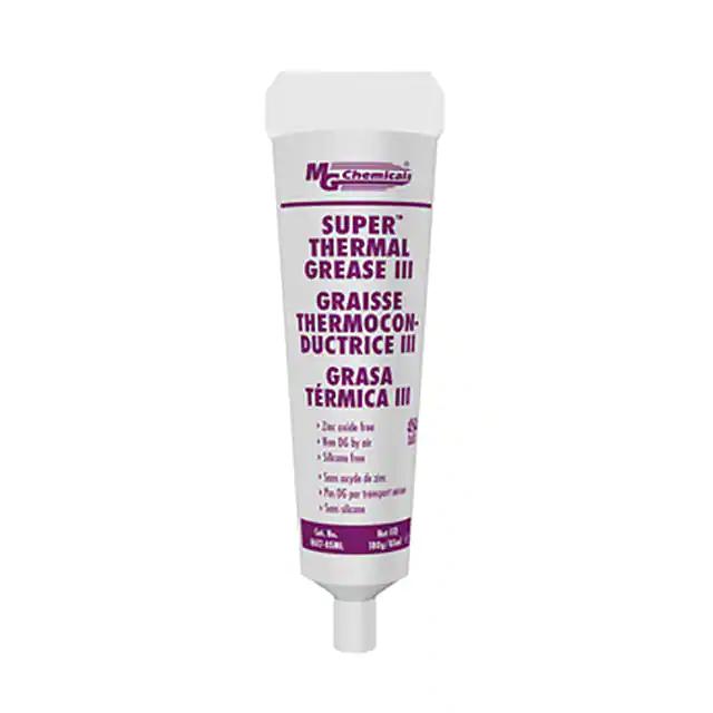 This is manufactured by MG Chemicals. The manufacturer part number is 8617-85ML. It is assigned with possible HTSUS value of 3403.99.0000. The product is rohs3 compliant. The product is highly reliable with a long-lasting period of 60 months. It comes in non-silicone grease configuration. In addition, it is reach unaffected. Its warranty starts from date of manufacture. It offers storage features at 14°f ~ 104°f (-10°c ~ 40°c). It features thermal conductivity of 1.00w/m-k. It is shipped in bulk. The product's diameters include 85 ml tube. Its typical moisture sensitivity level is not applicable. The splendid features of the product include odorless. It has a classic white colour. Moreover, it corresponds to 8617, a base product number of the product. The product is designated with the ear99 code number