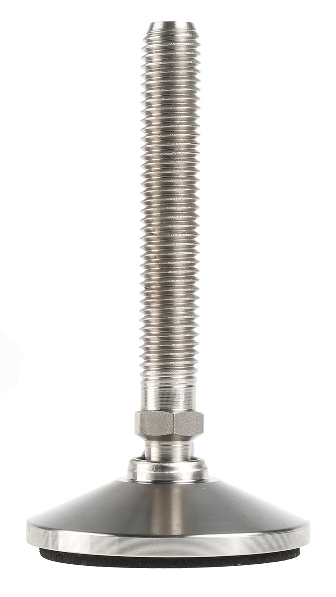 Low Profile Stainless Steel Base & Stud with Inset Nitrile Rubber Pad Up to ±10° of axial articulation Suitable for: Food processing, medical, electronic, lab equipment/machinery