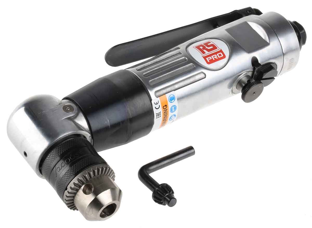 This is 10mm Angled Air Drill 1/4in 1700rpm (APT402) manufactured by RS Pro. The manufacturer part number is 739-8405. It comes in angled configuration. Its accurate length is 215mm. It has a robust speed of 1700 1/min.