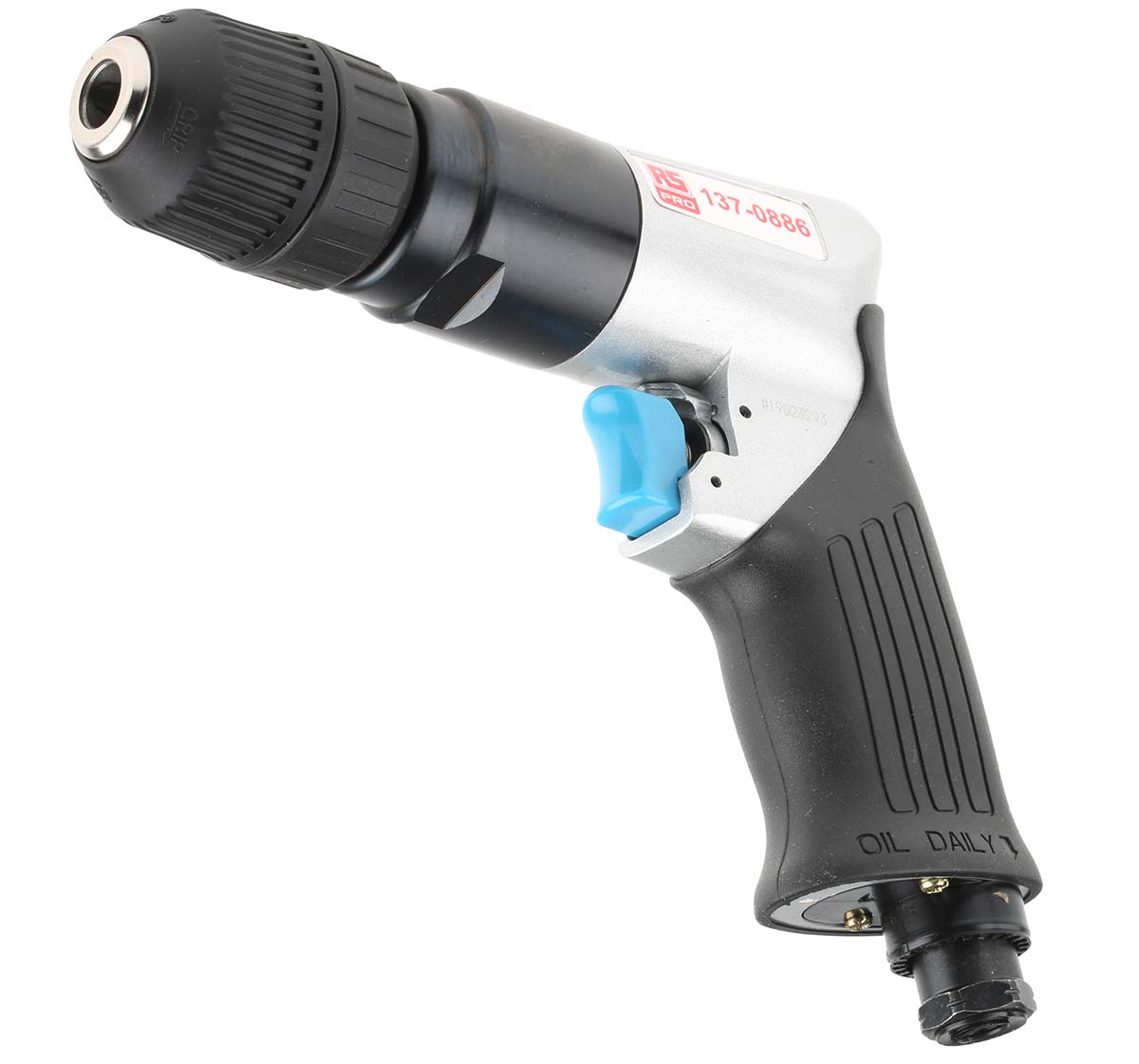 This is 10mm Reversible Yes Air Drill 1/4in 1800rpm manufactured by RS Pro. The manufacturer part number is 137-0886. It comes in reversible configuration. Its accurate length is 203mm. It has a robust speed of 1800 1/min.