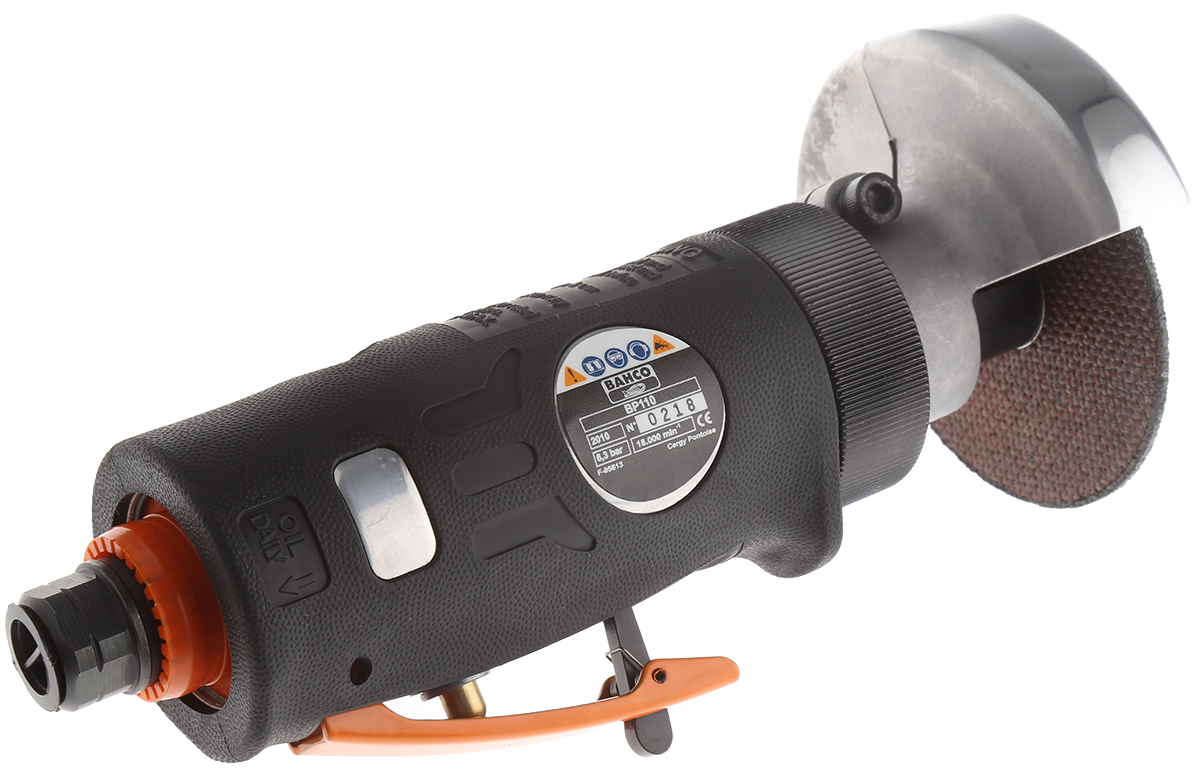 This is 75mm Compressed Air Angle Grinder 18000rpm manufactured by Bahco. The manufacturer part number is BP110. It has a robust speed of 18000rpm.
