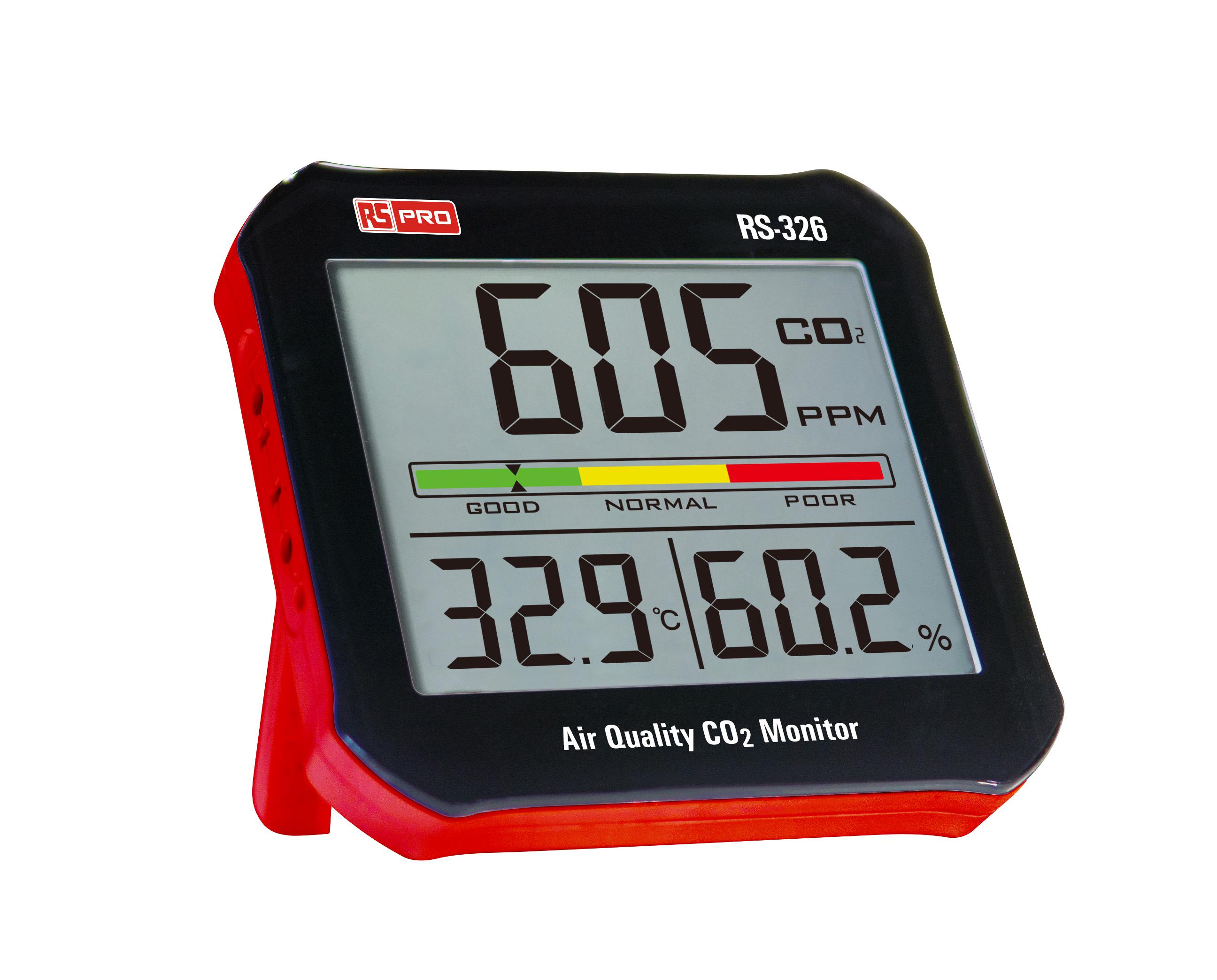 This is RS-326 Air Quality Meter Measures CO2 Humidity Temperature 100%RH Max +50°C Max Battery USB-Powered manufactured by RS PRO. The manufacturer part number is 236-2654. It features a remarkable lcd display. The typical product's weight is 210g. Whereas, the minimum operating temperature of the product is -10°c. In addition, the height is 25mm. Furthermore, the product is 103mm wide.
