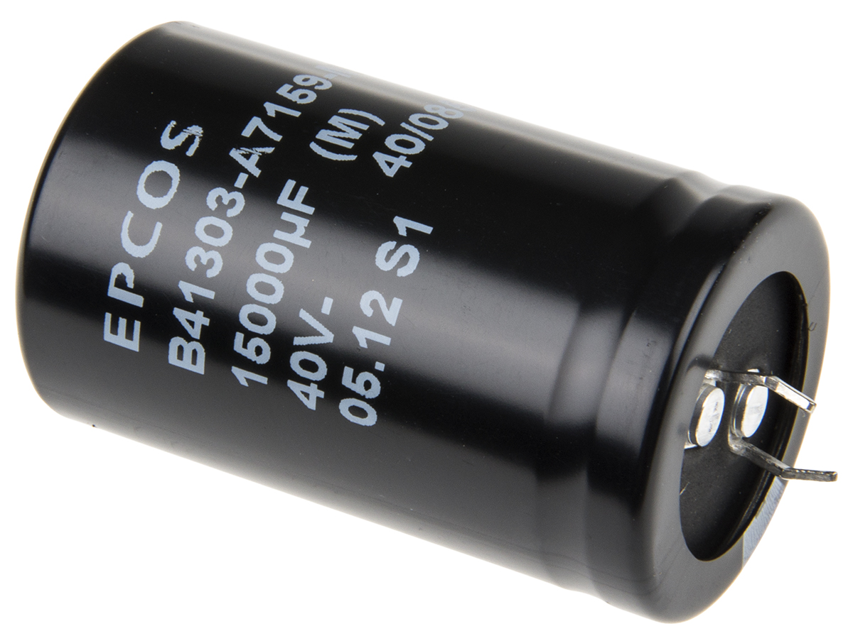 This is Aluminium Electrolytic Capacitor 15000μF 40V dc 30mm B41303 Series Through Hole Electrolytic ±20% manufactured by EPCOS. The manufacturer part number is B41303A7159M. Its diameter is 30mm. The given dimensions of the product include 30 (dia.) x 50mm. The product is available in snap-in configuration. The product b41303, is a highly preferred choice for users. In addition, the height is 50mm. It provides a 15000µf of capacitance value. It carries a 40v dc of voltage. Whereas, the minimum operating temperature of the product is -40°c. It has a maximum operating temperature of +85°c. It features ±20% of tolerance value. This product use electrolytic technology.