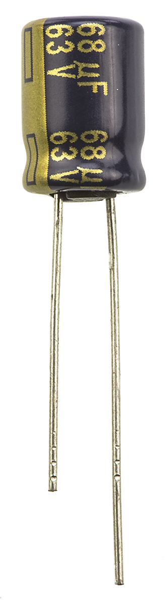 This is Aluminium Electrolytic Capacitor 68μF 63 V dc 8mm Through Hole FC Radial Series Lifetime 2000h +105°C manufactured by Panasonic. The manufacturer part number is EEUFC1J680. Its diameter is 8mm. The given dimensions of the product include 8 (dia.) x 11.5mm. The product is available in radial, through hole configuration. The product fc, is a highly preferred choice for users. In addition, the height is 11.5mm. It provides a 68µf of capacitance value. It carries a 63v dc of voltage. It has a maximum operating temperature of +105°c. It features ±20% of tolerance value. Whereas, the minimum operating temperature of the product is -55°c. This product use aluminium electrolytic technology.