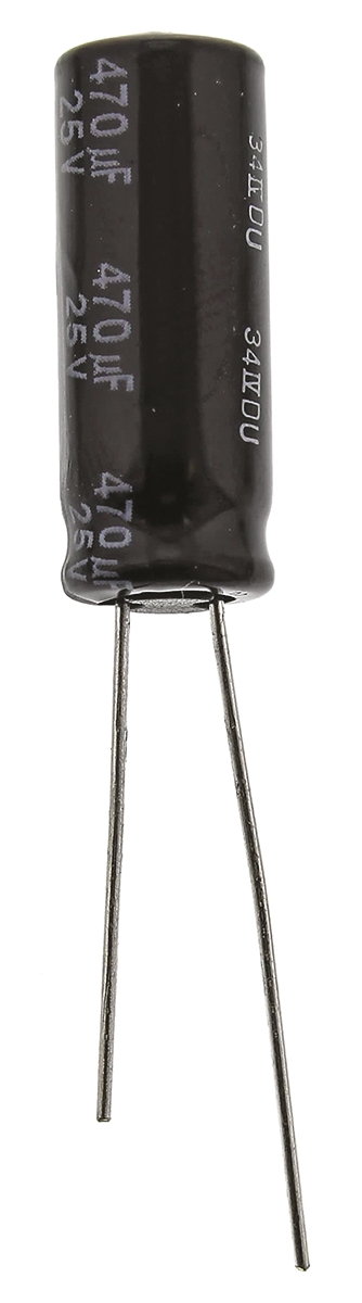 This is Aluminium Electrolytic Capacitor 470μF 25V dc 8mm FR Radial Series Through Hole Electrolytic ±20% manufactured by Panasonic. The manufacturer part number is EEUFR1E471L. Its diameter is 8mm. The given dimensions of the product include 8 (dia.) x 20mm. The product is available in radial, through hole configuration. The product fr, is a highly preferred choice for users. In addition, the height is 20mm. It provides a 470µf of capacitance value. It carries a 25v dc of voltage. It has a maximum operating temperature of +105°c. It features ±20% of tolerance value. Whereas, the minimum operating temperature of the product is -40°c. This product use aluminium electrolytic technology.