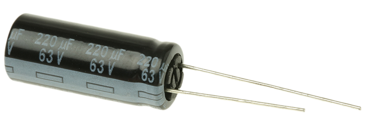 This is Aluminium Electrolytic Capacitor 220μF 63 V dc 10mm PCB Mount FR Series Lifetime 10000h +105°C manufactured by Panasonic. The manufacturer part number is EEUFR1J221L. Its diameter is 10mm. The given dimensions of the product include 10 (dia.) x 25mm. The product is available in radial, through hole configuration. The product fr, is a highly preferred choice for users. In addition, the height is 25mm. It provides a 220µf of capacitance value. It carries a 63v dc of voltage. It has a maximum operating temperature of +105°c. It features ±20% of tolerance value. Whereas, the minimum operating temperature of the product is -40°c. This product use aluminium electrolytic technology.