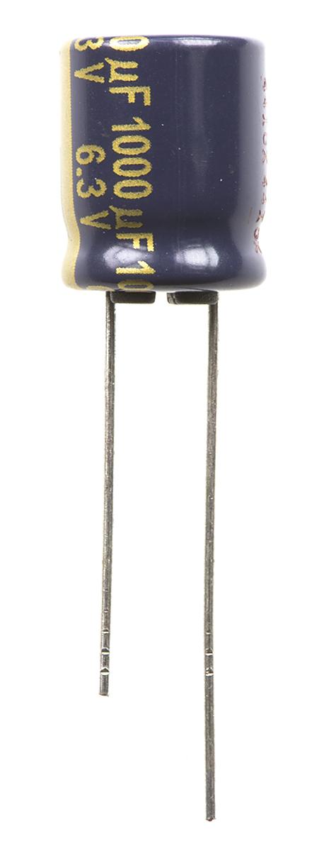 This is Aluminium Electrolytic Capacitor 1000μF 6.3V dc 10mm FC Radial Series Through Hole Electrolytic ±20% manufactured by Panasonic. The manufacturer part number is EEUFC0J102. Its diameter is 10mm. The given dimensions of the product include 10 (dia.) x 12.5mm. The product is available in through hole configuration. The product fc radial, is a highly preferred choice for users. In addition, the height is 12.5mm. It provides a 1000µf of capacitance value. It carries a 6.3v dc of voltage. It has a maximum operating temperature of +105°c. It features ±20% of tolerance value. Whereas, the minimum operating temperature of the product is -55°c. This product use electrolytic technology.