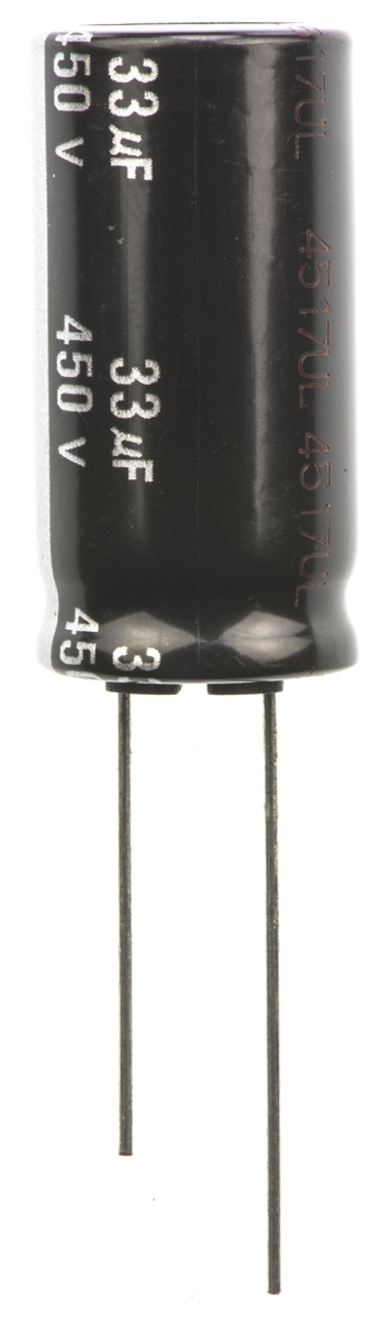 This is Aluminium Electrolytic Capacitor 33μF 450V dc 16mm ED RADIAL Series Through Hole Electrolytic ±20% manufactured by Panasonic. The manufacturer part number is EEUED2W330. Its diameter is 16mm. The given dimensions of the product include 16 (dia.) x 31.5mm. The product is available in through hole configuration. The product ed radial, is a highly preferred choice for users. In addition, the height is 31.5mm. It provides a 33µf of capacitance value. It carries a 450v dc of voltage. Whereas, the minimum operating temperature of the product is -25°c. It has a maximum operating temperature of +105°c. It features ±20% of tolerance value. This product use electrolytic technology.