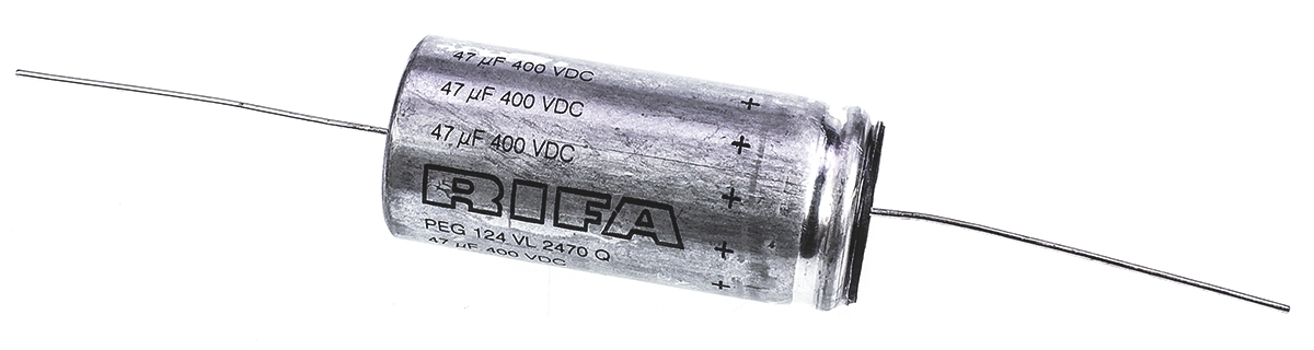 This is Aluminium Electrolytic Capacitor 47μF 400V dc 20mm Axial Can PEG124 Series Aluminium Electrolytic Through Hole manufactured by KEMET. The manufacturer part number is PEG124VL2470QL1. Its diameter is 20mm. The given dimensions of the product include 20 x 46mm. The product is available in axial, through hole configuration. The product peg124, is a highly preferred choice for users. It provides a 47µf of capacitance value. Its accurate length is 46mm. It carries a 400v dc of voltage. It has a maximum operating temperature of +105°c. It features -10 → +30% of tolerance value. Whereas, the minimum operating temperature of the product is -40°c. This product use aluminium electrolytic technology.