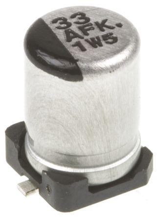 This is Aluminium Electrolytic Capacitor 33μF 10V dc 4mm B FK SMD Series Surface Mount Electrolytic ±20% manufactured by Panasonic. The manufacturer part number is EEEFK1A330UR. Its diameter is 4mm. The given dimensions of the product include 4 (dia.) x 5.8mm. The product is available in surface mount configuration. The product fk smd, is a highly preferred choice for users. In addition, the height is 5.8mm. It provides a 33µf of capacitance value. It carries a 10v dc of voltage. It has a maximum operating temperature of +105°c. It features ±20% of tolerance value. Whereas, the minimum operating temperature of the product is -55°c. This product use electrolytic technology.