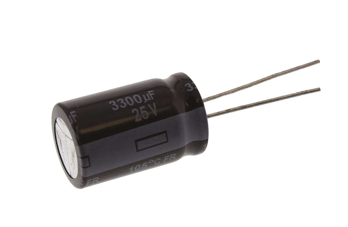 This is Aluminium Electrolytic Capacitor 3300μF 25 V dc 16mm Through Hole FR Radial Series Lifetime 10000h +105°C manufactured by Panasonic. The manufacturer part number is EEUFR1E332. Its diameter is 16mm. The given dimensions of the product include 16 (dia.) x 25mm. The product is available in radial, through hole configuration. The product fr, is a highly preferred choice for users. In addition, the height is 25mm. It provides a 3300µf of capacitance value. It carries a 25v dc of voltage. Whereas, the minimum operating temperature of the product is -40°c. It has a maximum operating temperature of +105°c. It features ±20% of tolerance value. This product use aluminium electrolytic technology.