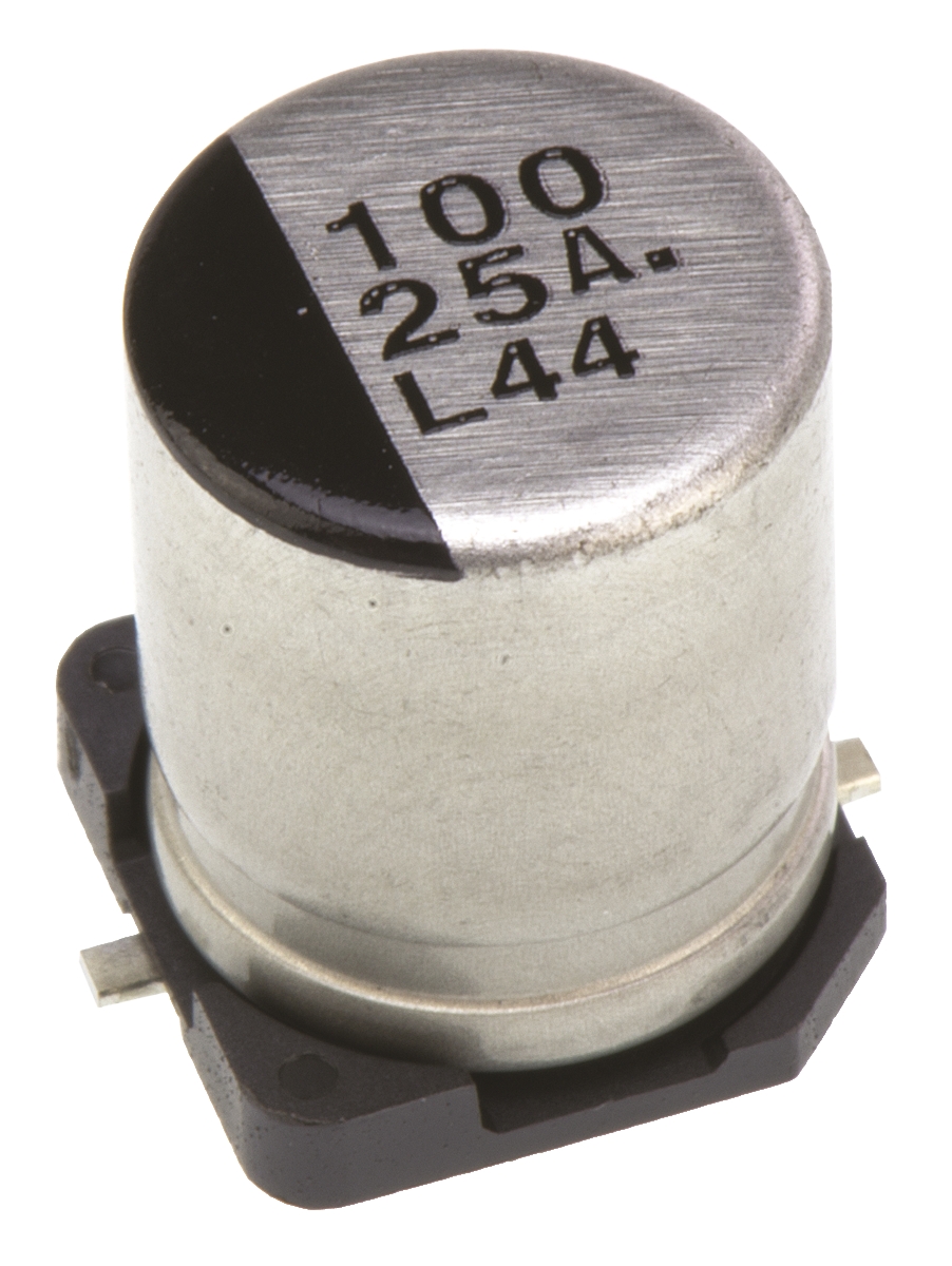 This is Aluminium Electrolytic Capacitor 100μF 25 V dc 8mm Surface Mount VS Series Lifetime 2000h +85°C manufactured by Panasonic. The manufacturer part number is EEE1EA101P. Its diameter is 8mm. The given dimensions of the product include 8 (dia.) x 10.2mm. The product is available in surface mount configuration. The product s, is a highly preferred choice for users. Whereas, the minimum operating temperature of the product is -40°c. In addition, the height is 10.2mm. It provides a 100µf of capacitance value. It carries a 25v dc of voltage. It has a maximum operating temperature of +85°c. It features ±20% of tolerance value. This product use aluminium electrolytic technology.
