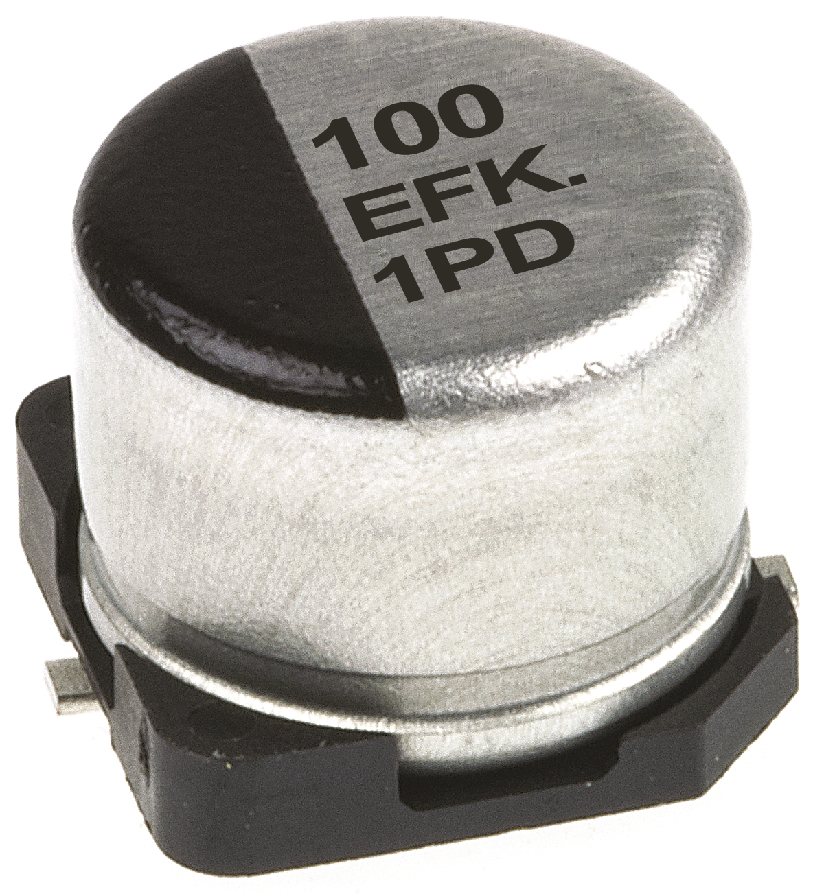 This is Aluminium Electrolytic Capacitor 100μF 25V dc 8mm E FK SMD Series Surface Mount Electrolytic ±20% manufactured by Panasonic. The manufacturer part number is EEEFK1E101P. Its diameter is 8mm. The given dimensions of the product include 8 (dia.) x 6.2mm. The product is available in surface mount configuration. The product fk smd, is a highly preferred choice for users. Whereas, the minimum operating temperature of the product is -55°c. In addition, the height is 6.2mm. It provides a 100µf of capacitance value. It carries a 25v dc of voltage. It has a maximum operating temperature of +105°c. It features ±20% of tolerance value. This product use aluminium electrolytic technology.